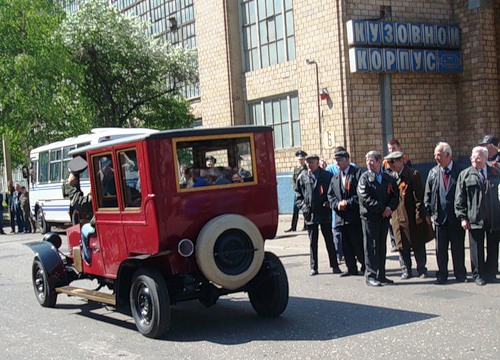 Эта машина была создана коллективом музея газеты "Авто Ревю" (музей экипажей и автомобилей) лет пятнадцать назад - имитация под 10-20-ые годы. В каком-то номере "А-Р" тех лет было описание этой машины: двигатель - от ГАЗ-51,коробка - от 21-ой Волги и т.д. Назвали машину "АР".