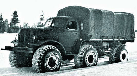 Главной новинкой послевоенного времени стал 4-тонный грузовик ЗИС-150 с 6-цилиндровым двигателем ЗИС-120 (5,55 л, 90 л.с.), 5-ступенчатой коробкой передач и пневматическим приводом тормозов. В Советской армии он применялся для доставки различных грузов и личного состава, в том числе первых авиадесантных подразделений, служил базой различных цистерн и специального оборудования. В 50-е гг. для военных нужд на его базе был создан седельный тягач ЗИС-120Н с задними арочными шинами, буксировавший бортовой полуприцеп с такими же колесами. Главной же ролью ЗИС-150 в развитии военной автотехники стало использование его шасси для перспективного поколения армейских машин повышенной проходимости. Еще в ноябре 1944 г. появился опытный образец ЗИС-150П (4x4), но военные его не приняли. К тому времени советские конструкторы уже хорошо были знакомы с поступавшими по ленд-лизу американскими грузовиками с колесной формулой 6x6, поэтому приоритет был отдан 3-осной машине. При этом, несмотря на явное преимущество опытного образца 2,5-тонного грузовика ЗИС-151 (6x6), построенного в 1946 г. и оснащенного всеми односкатными колесами с одинаковой колеей, под сильным влиянием американского авторитета предпочтение было отдано более грузоподъемному варианту с задней двускатной ошиновкой. Бортовой ЗИС-151, собиравшийся с октября 1948 г., получил 90-сильный двигатель от ЗИС-150, сухое 2-дисковое сцепление, 5-ступенчатую коробку с ускоряющей передачей и 2-ступенчатую раздаточную, два задних моста с индивидуальным приводом, состоявшим из 3 карданных валов и передний ведущий мост с шарнирами равных угловых скоростей "Бендикс-Вейсс" (Bendix-Weiss). В базовом исполнении он оснащался многоцелевым кузовом с решетчатыми бортами, продольными скамьями и тентом. ЗИС-151А получил переднюю 4,5-тонную лебедку, вариант "151Д" — экранированное электрооборудование. При общей схожести с американскими прототипами ЗИС-151, имевший полезную нагрузку по шоссе 4,5 т и снаряженную массу 5580 кг, был тяжелее, развивал скорость всего 55–60 км/ч и расходовал намного больше бензина — до 55 л на 100 км. Он преодолевал подъемы крутизной 28° и броды глубиной до 80 см. В 50-е гг. ЗИС-151 стал основным средним грузовиком в вооруженных силах СССР и социалистических стран. На его шасси выпускались топливо- и водомаслозаправщики АТЗ-3-151 и ВМЗ-151, устанавливалось различное специальное и инженерное оборудование, в том числе 15-тонный колейный механический мост КММ длиной 7 м и секции тяжелого понтонного парка ТПП, позволявшего строить временные мосты длиной более 200 м, выдерживавшие нагрузку до 70 т. 7 ноября 1957 г. седельные тягачи ЗИС-121Д впервые прошли на параде с зенитными ракетными комплексами С-25 "Беркут".