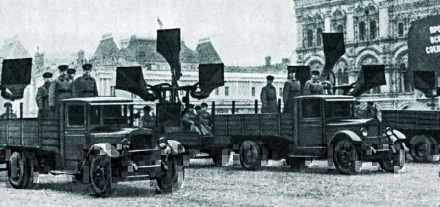 их вариантов. В декабре 1933 г. начался выпуск грузовика ЗИС-6 (6x6) с 2-ступенчатым редуктором в трансмиссии, главными червячными передачами и вакуумным усилителем в приводе тормозов, развивавшего скорость 55 км/ч. Он стал основным тяжелым автомобилем РККА, который использовался для буксировки орудий и установки фургонов-радиостанций, топливозаправщиков БЗ-35, полевых ремонтных мастерских типа Б (ПМ-5-6), передвижных 30-киловаттных электростанций АЭС-4, прожекторов ПО-15-8, звукоулавливателей ЗТ-5, 3-тонных кранов АК-3 и др.