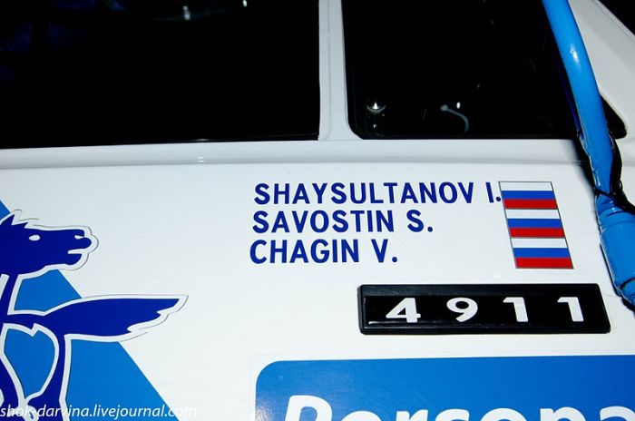 На этих фотографиях — гоночный «КАМАЗ» текущего года постройки. От своего предшественника новый грузовик отличается не только иным оформлением передка с маленькими ксеноновыми фарами, но и кабиной, сдвинутой назад на расстояние, максимально разрешенное правилами ралли-рейдов. И хотя залезать внутрь стало катастрофически неудобно, новая компоновка улучшила развесовку по мостам до классических «пятьдесят на пятьдесят»